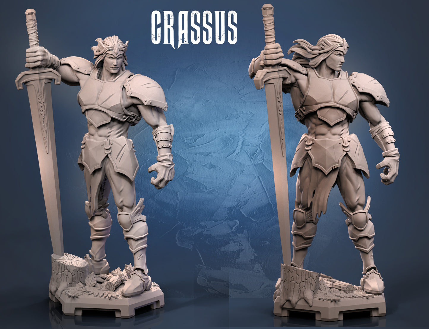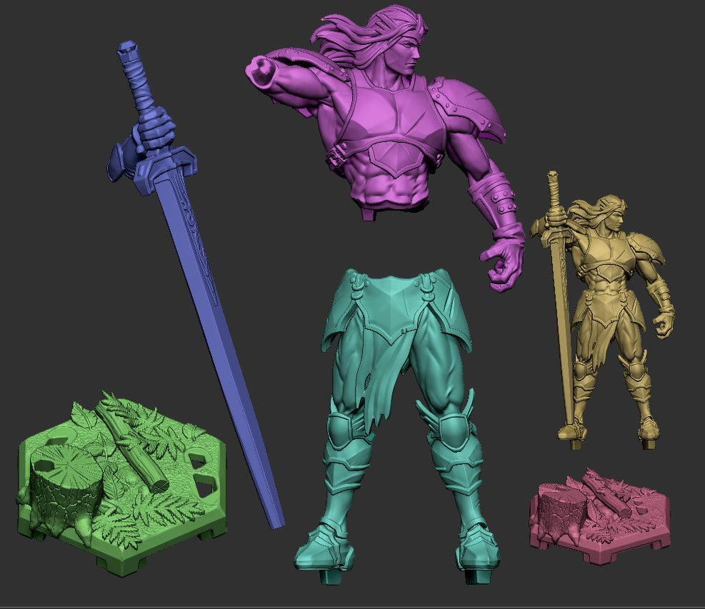 A powerful swordsman miniature clad in ornate armor, gripping an immense greatsword with a commanding stance. His flowing hair and intricate plating add to his heroic presence, making him ideal for fantasy TTRPGs like Dungeons & Dragons and Pathfinder. A perfect addition for collectors, game masters, and painters seeking a dynamic warrior figure.