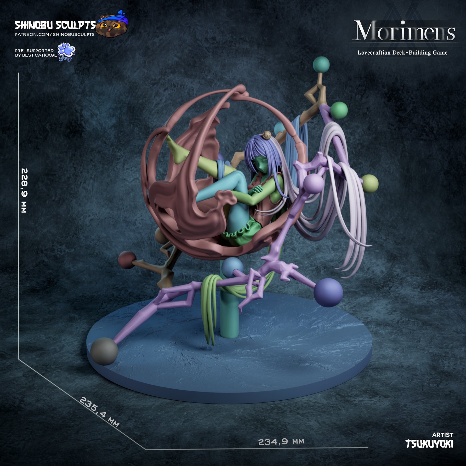 Faint drifts in her surreal Lovecraftian cradle, suspended in a cosmic lattice of tendrils and spheres. This 1:8 scale collectible from Morimen blends elegance with eldritch energy—perfect for fans of eerie beauty who prefer their chaos artistically posed rather than summoned.