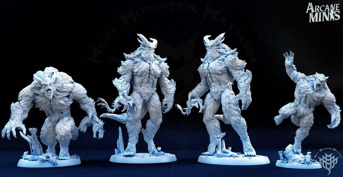 Discover our Grimhulk yetis, perfect for your D&D and Pathfinder campaigns! Choose from the majestic Elder Grimhulk, the formidable Greyback Grimhulk, and the dynamic Grimhulk in a thrilling jump attack pose. Each sculpt captures the raw power and majesty of these icy beasts.