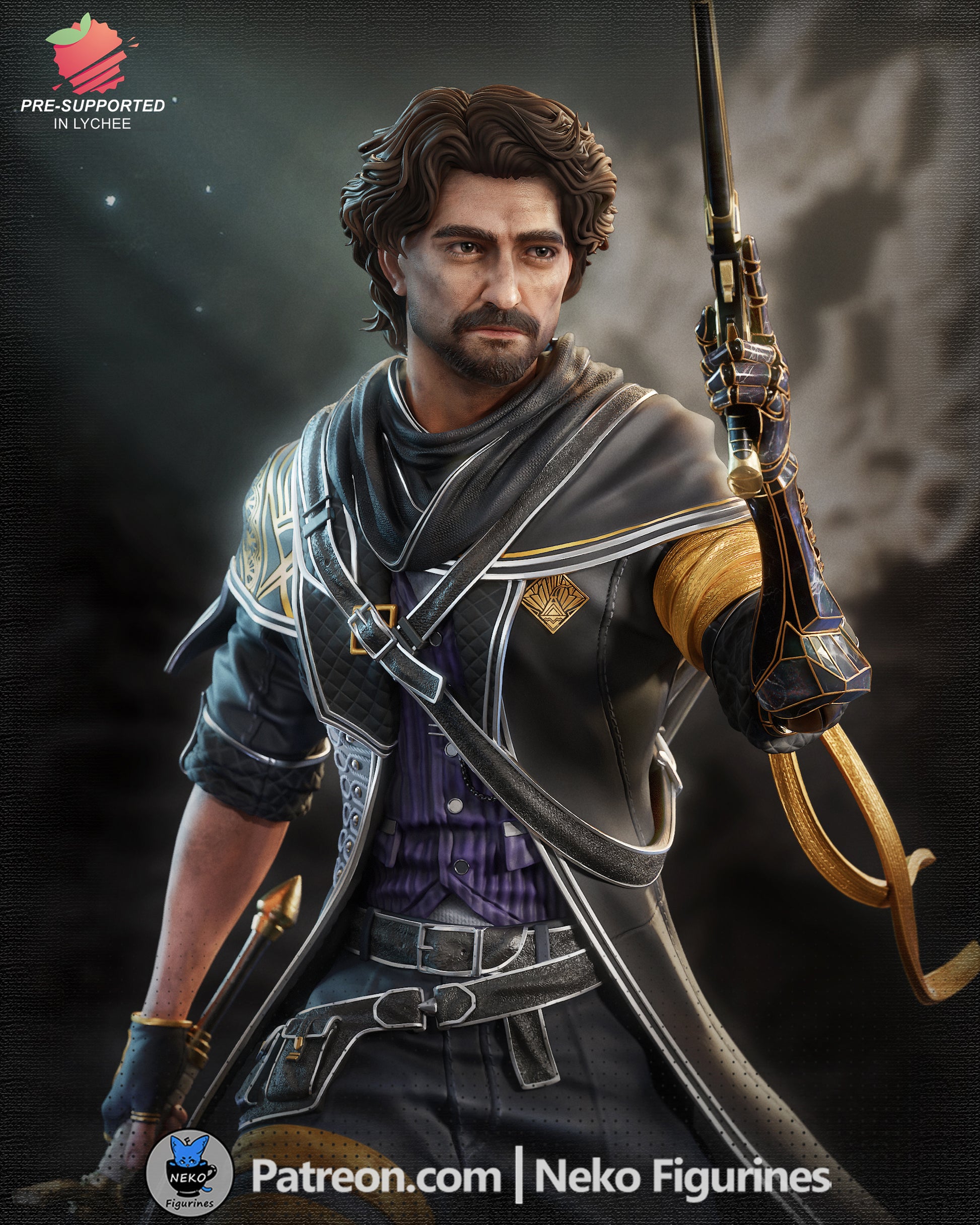 Detailed 1:7 scale collectible of Gustave from Expedition 33, posed with a long sword and ornate pistol atop rocky terrain. Features 26 modular parts, intricate clothing folds, and dynamic stance. Ideal for display or painting, capturing this steampunk-inspired hero in stunning detail.