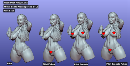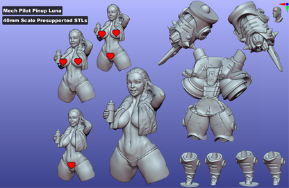 Mech Pilot Pinup Luna is a highly detailed 3D printable model featuring a cybernetic mech pilot and her imposing battle frame. Available in multiple variations, this 40mm-scale STL set is perfect for collectors and tabletop enthusiasts. The kit includes modular parts, allowing for customization of both the pilot and the mech suit.
