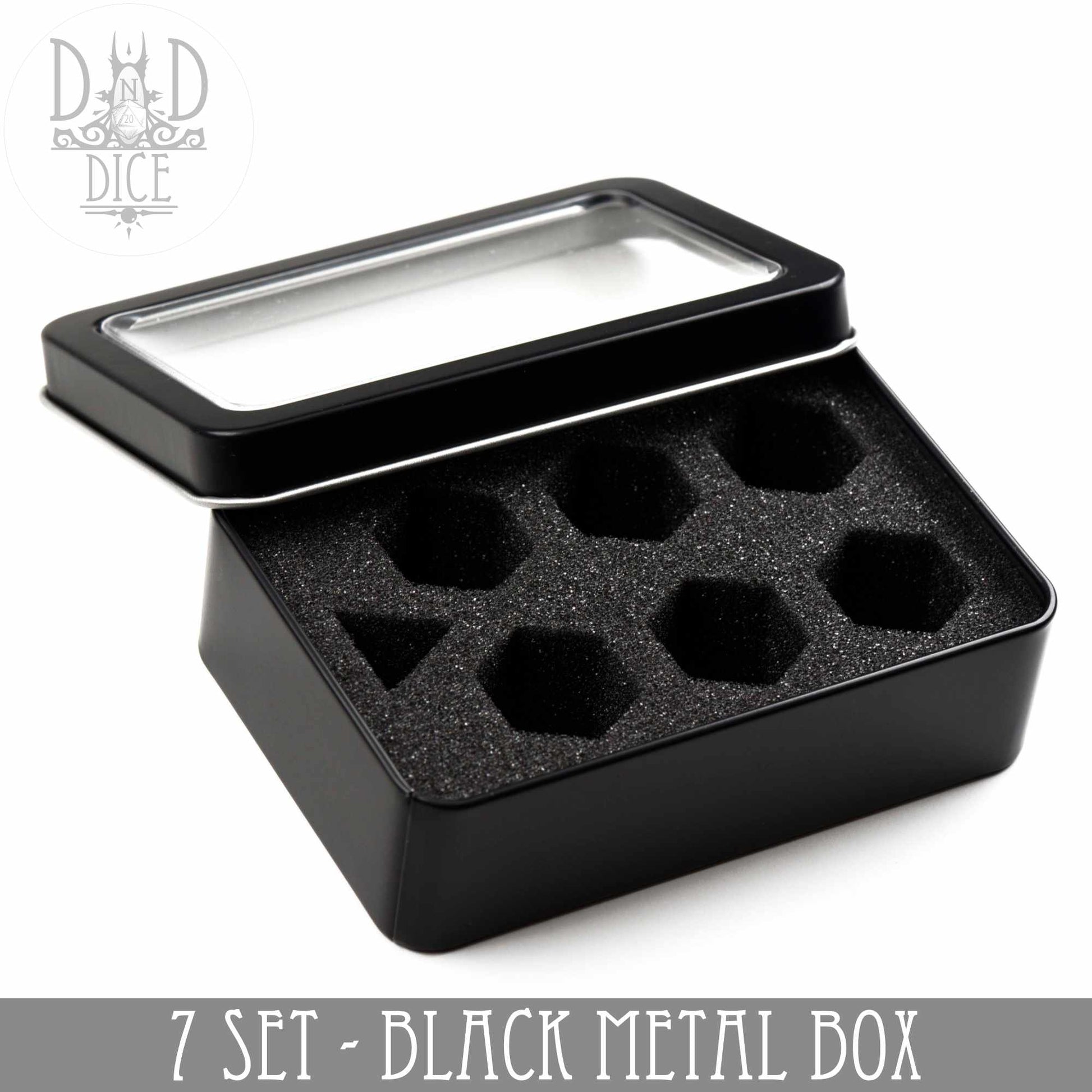 A great way to store or showcase your expanded 7 dice sets.  Or bless your friends with a gift box for their favorite sets.  This Metal Gift Box Will Hold Standard Sized 7 Dice Sets.