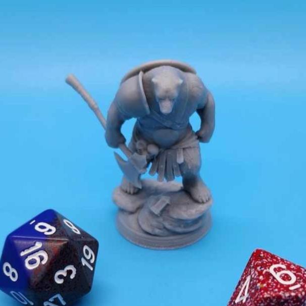 Polar the Bear miniature for TTRPGs like Dungeons & Dragons and Pathfinder. Featuring a fierce bear warrior wielding a massive axe, clad in armor with a shield, this detailed model is perfect for painters and adds a powerful character to any fantasy tabletop game.