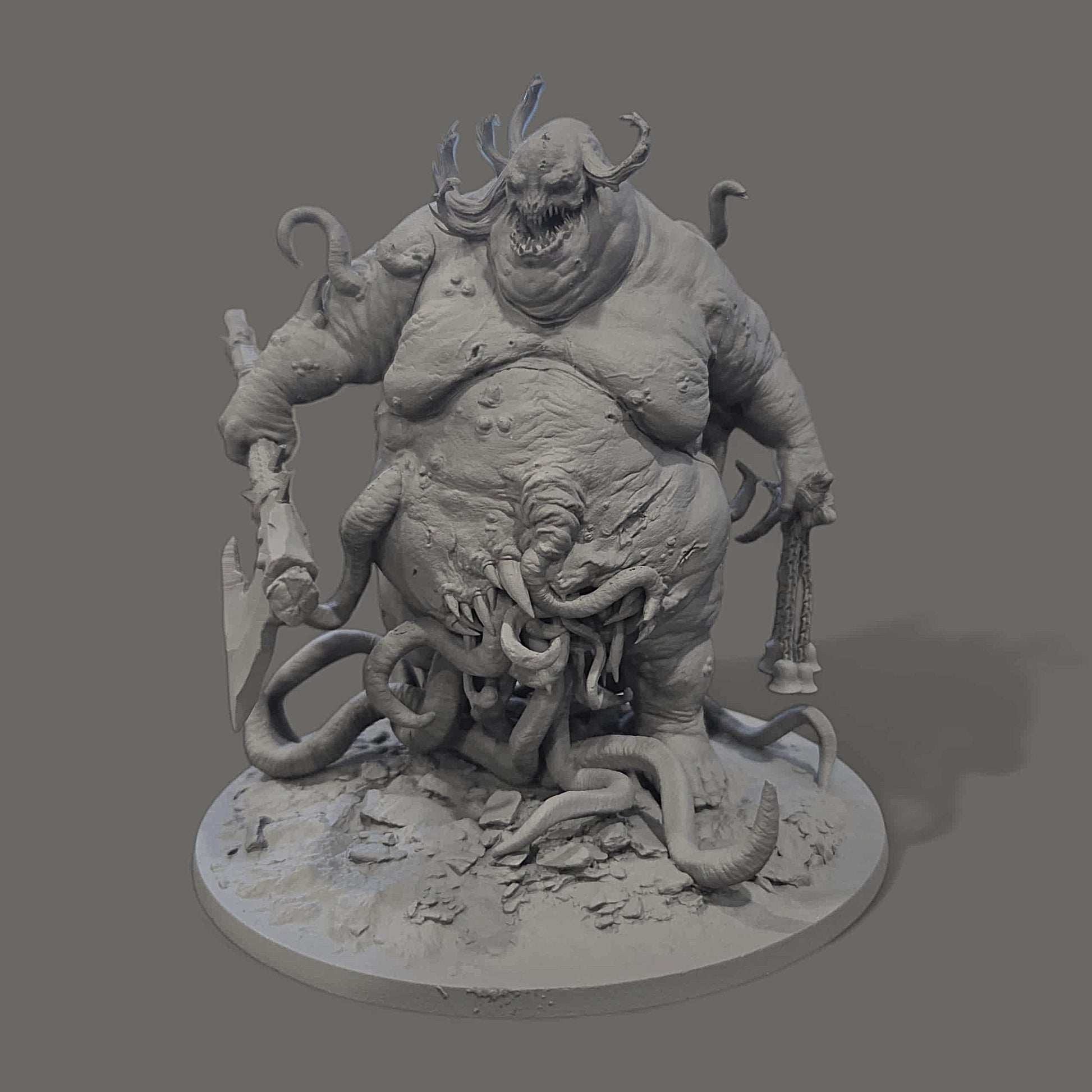 The Purulent Demon, a hulking and grotesque abomination, oozes malevolence with its bloated form, covered in festering wounds and writhing tentacles. This terrifying figure is perfect for TTRPG games like D&D, Pathfinder, and Warhammer, offering a rewarding challenge for painters with its intricate, monstrous details.