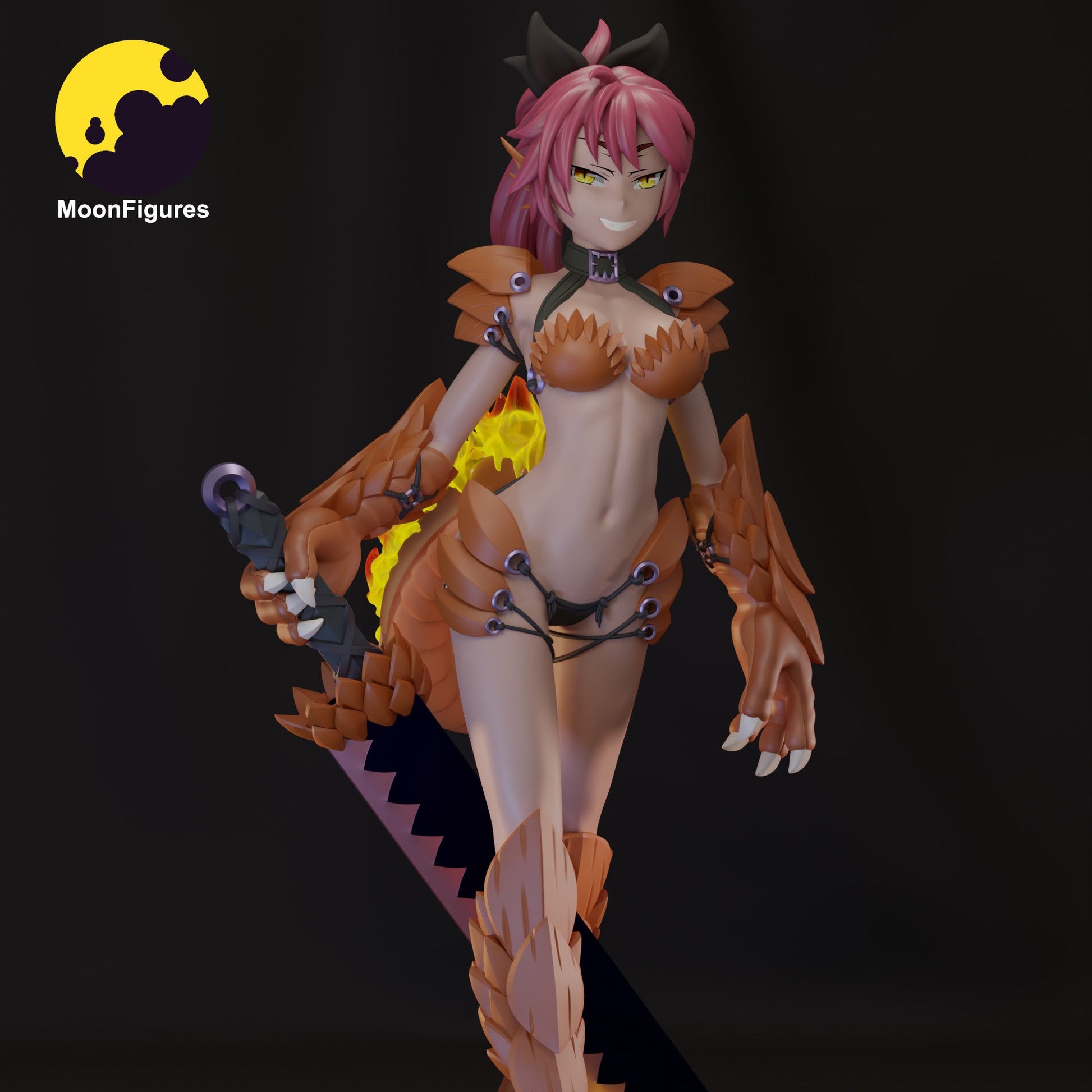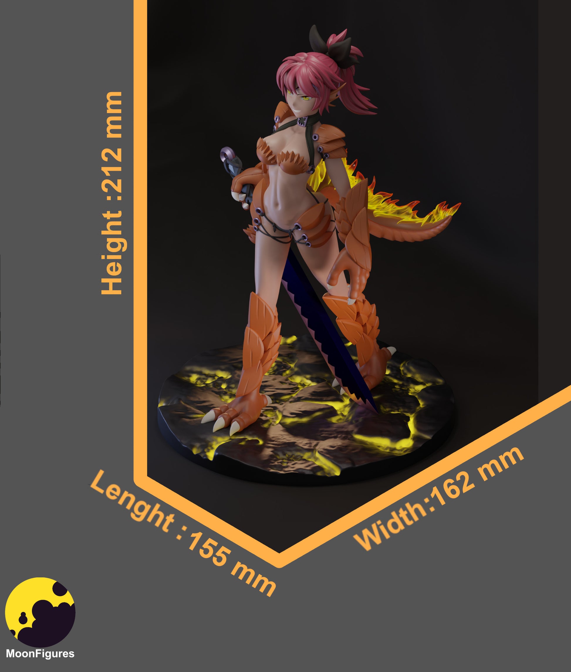 The Salamander figure brings fiery charm and fantasy heat straight from the Monster Girl Encyclopedia. Standing 212mm tall with flame-tipped tail and dragon-scale armor, she’s equal parts danger and delight—because who wouldn’t trust a half-dragon warrior holding a sword bigger than her ego?