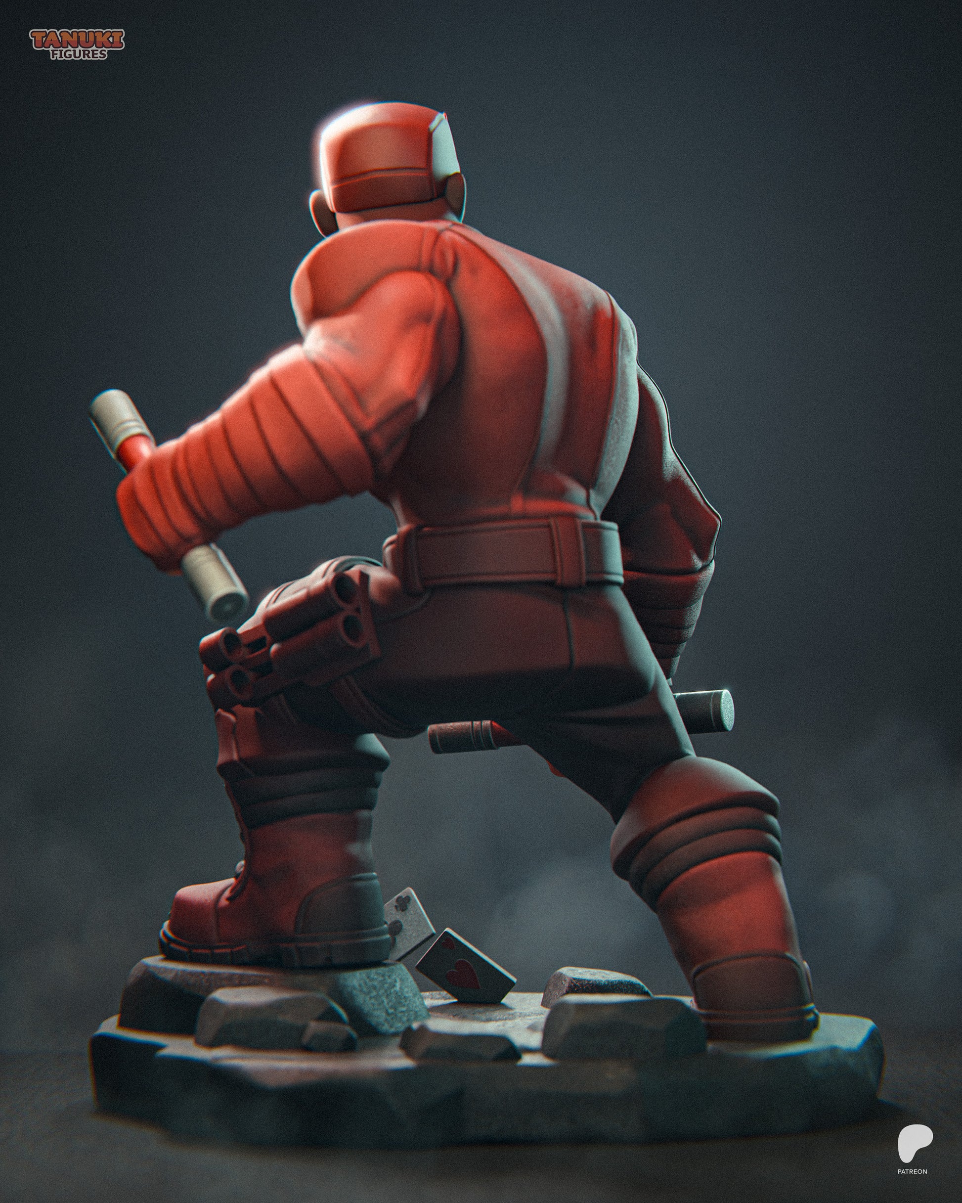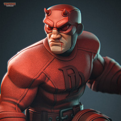 This chibi scale Toon Daredevil figure captures the Man Without Fear in a dynamic crouch with batons in hand. Designed with stylized proportions, bold lines, and a gritty base scattered with playing cards, it's a perfect blend of cartoon charm and Marvel grit.