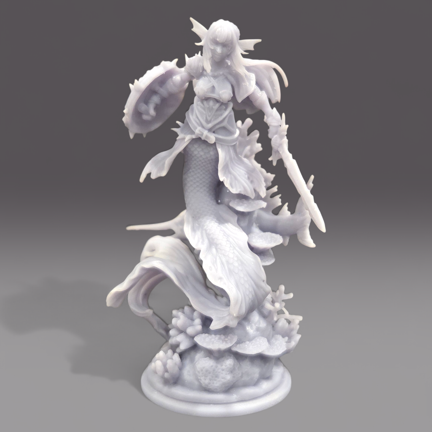 Urasyl, the dual-form Water Nymph, embodies both a fierce mermaid warrior and a skilled swordswoman on land. Perfect for D&D, Pathfinder, or similar TTRPGs, this detailed figure showcases her aquatic and terrestrial forms. Ideal for character-driven campaigns or as a unique foe in fantasy worlds..