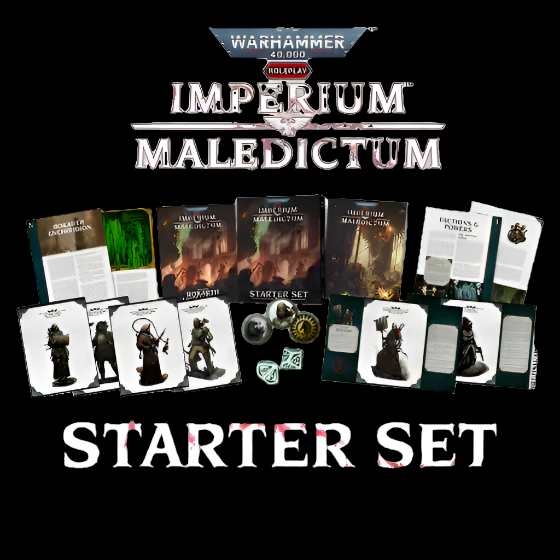 - The Imperium Maledictum Starter Set contains everything you need to begin your grim and perilous Warhammer 40,000 roleplay experience.