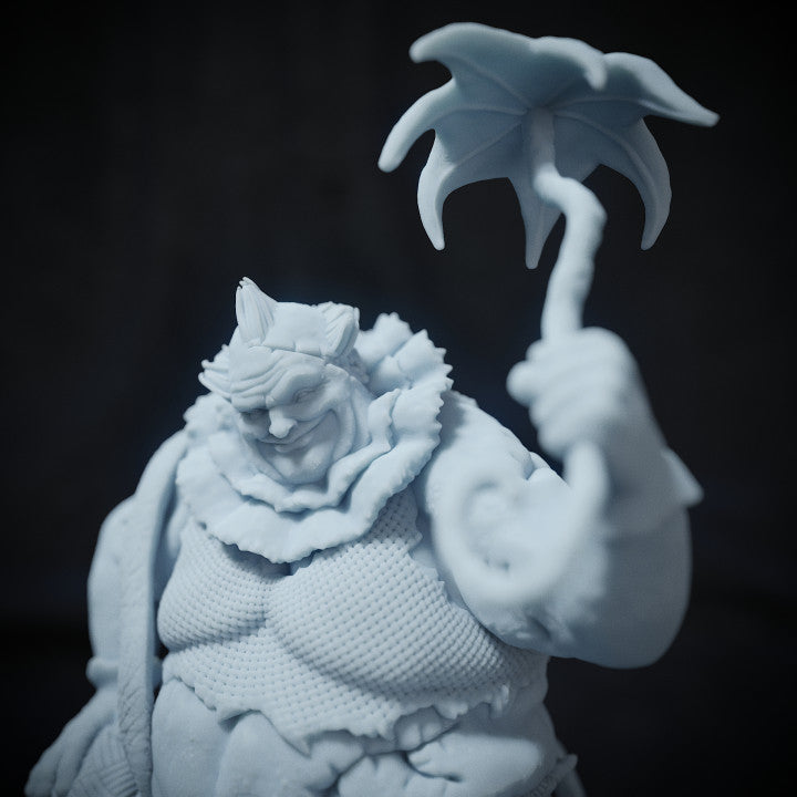 Wayne, the portly clown with a ragged umbrella, brings humor with a dose of menace to your TTRPG adventure. His crooked smile and barrel prop hint at both comedy and chaos—a perfect addition for your next Dungeons & Dragons or Pathfinder session. Just don’t ask for shelter under that umbrella!