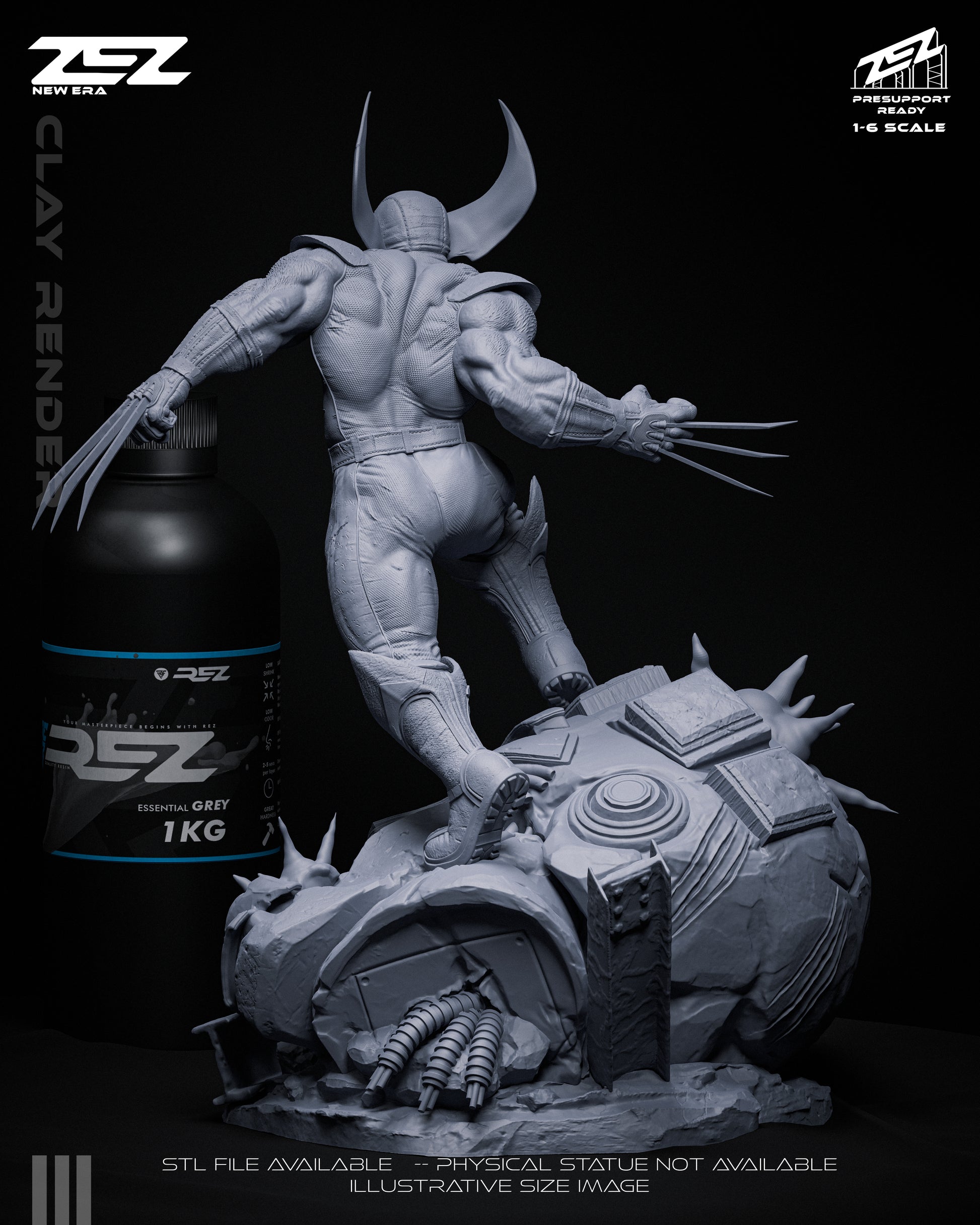 Logan stands ready in this 1:6 scale collectible from Tanuki Figures, featuring his signature claws, tank top, jeans, and cigar. Posed on a bar-themed base with shotgun shells and pool balls, this Wolverine-inspired piece is perfect for Marvel fans and statue collectors.